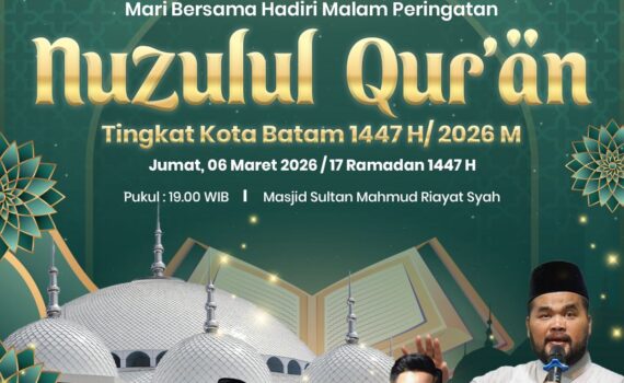 Wali Kota Batam, Amsakar Achmad, mengajak masyarakat untuk menghadiri peringatan malam Nuzululqur’an tingkat Kota Batam 1447 Hijriah yang akan digelar pada Jumat (6/3/2026) di Masjid Sultan Mahmud Riayat Syah. Kegiatan tersebut dijadwalkan dimulai pukul 19.00 WIB. Wali Kota Batam, Amsakar Achmad, mengundang masyarakat untuk hadir bersama-sama meramaikan peringatan turunnya Al-Qur’an […]
